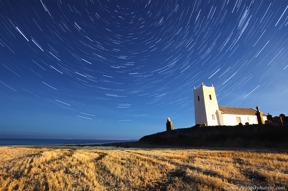 Complete star trail made from 103 x 15 sec exposures, the bright moonlight in conjunction with a couple of sodium lights did a superb job of illuminating the field and church for me, no torches needed here, this was natural light painting using nature and the ambient light, the scene can look almost like daylight when captured with a fast lens.