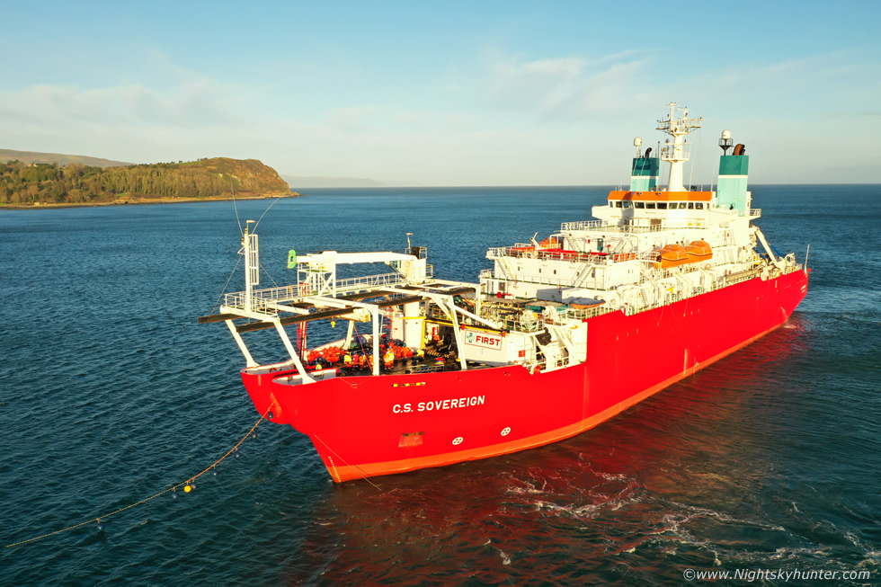 It was the night of January 10th/11th 2022 that I made the decision that I was going on a late night ship chase. I had been in the process of scanning through the ship tracking websites when I happened to notice a most unusual vessel located off the NE coast of N. Ireland, her name was C S Sovereign, she was a Southampton based cable laying vessel at 130m in length and she was at anchor off shore at a location called Drains Bay between Ballygally and Larne. Truth be told I had actually been tracking her for a week or more and monitoring her every move to see if she would come within range and if that range would correspond with a dry weather window with a chance of good light to justify the trip.