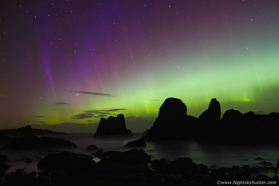 Time lapse video of the Oct 7th/8th geomagnetic storm filmed with two DSLRs and Go Pro from Elephant Rock and from our second location on top of the stacks, I have also included our real time audio featuring the sound of the sea and our own reactions to the aurora which I hope captivates what it was like to be there, best watched at 1080p HD.