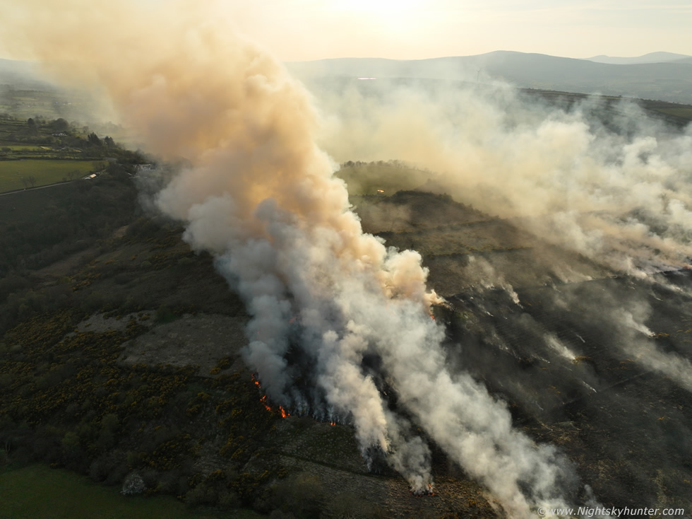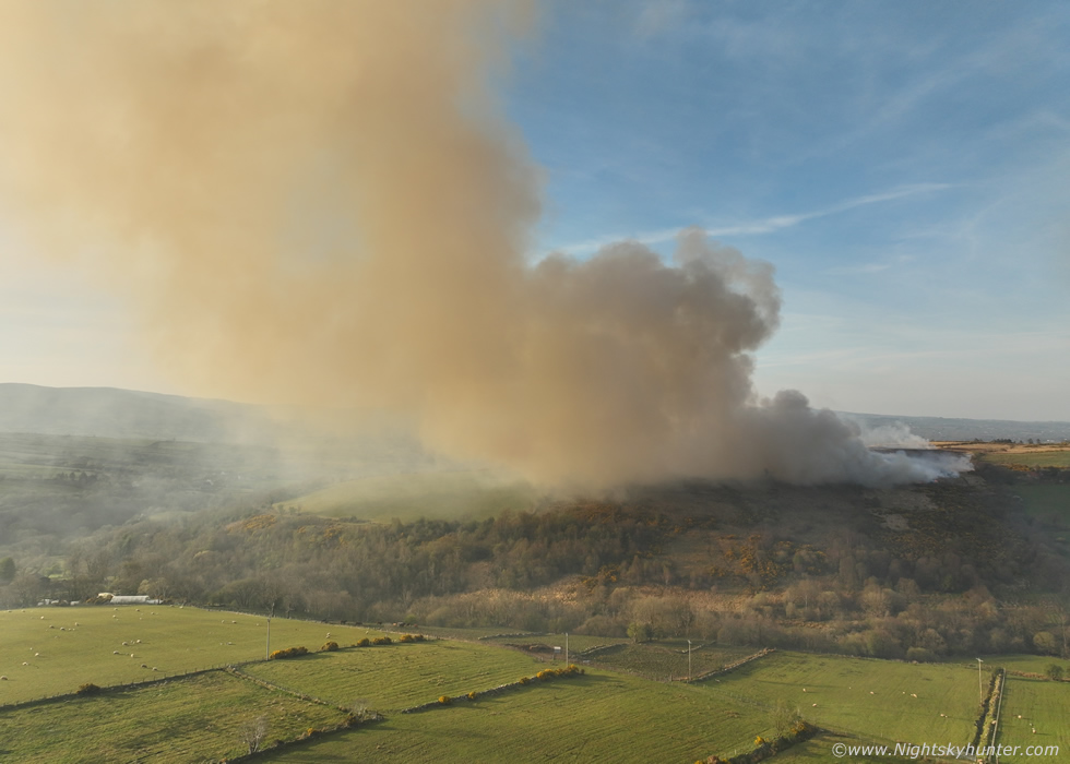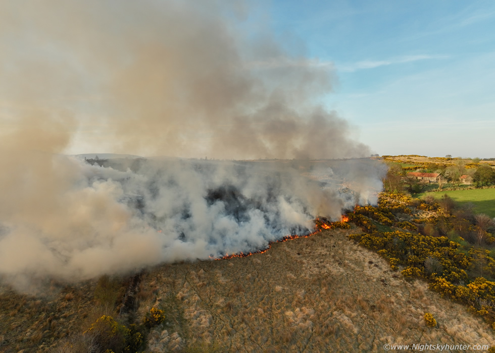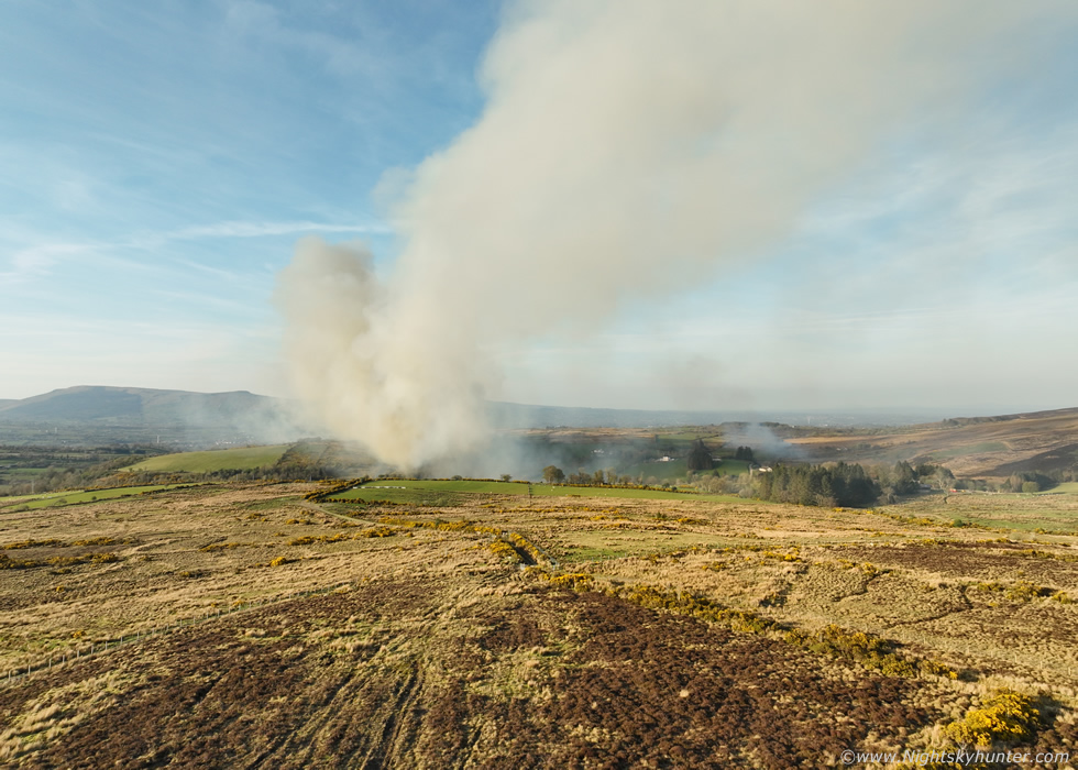 N. Ireland is in the midst of a wild fire outbreak the likes of which we haven't seen in years. Barely a day goes by before another fire starts with news coverage on social media and main stream television, fire fighters just confirmed more than 350 wild fires within a week and with the good weather lasting another couple of days more fires were likely. News statements all stated that many of these fires were deliberate by either arsonists or land owners. Two days earlier on May 8th I was filming a major fire near Ballgawley in Co. Tyrone, it was the largest fire I had filmed since the Glenshane Pass gorse fires of 2018, in fact, the Ballygawley fire was longer and wider making the latter event the largest I had ever filmed with a drone. Once I posted footage and images online I was inundated with media interest from newspapers with the BBC and UTV licensing my content. These fires were big news and the footage provided rather dramatic views of the full blaze which helped with their own ground footage at the site in conjunction with reporters. While all this was going on I thought I would never see a gorse fire that large again for a long time.