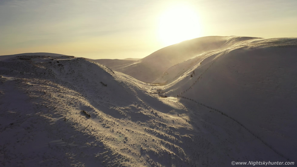 Full footage of the moody pre-sunset Moneyneany scenes with sunlit peaks then back-lit valleys and blowing snow. If I don't see any more snow this year then I can be content with what I have captured here, anything else will be icing on the cake.