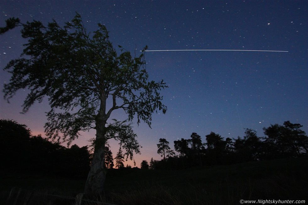 A very bright pass of the International Space Station (ISS) over a very tall tree at the shore of Lough Fea near Draperstown on June 7th 2013 captured with a 10mm ultra wide angle lens. The ISS was mag -3.0 and lasted for 6 min's in duration as it proudly crossed the Summer twilight sky. * All images are available for sale in the form of photo prints, canvas or digital files for licensing, if you are interested in a purchase simply drop me an email. |