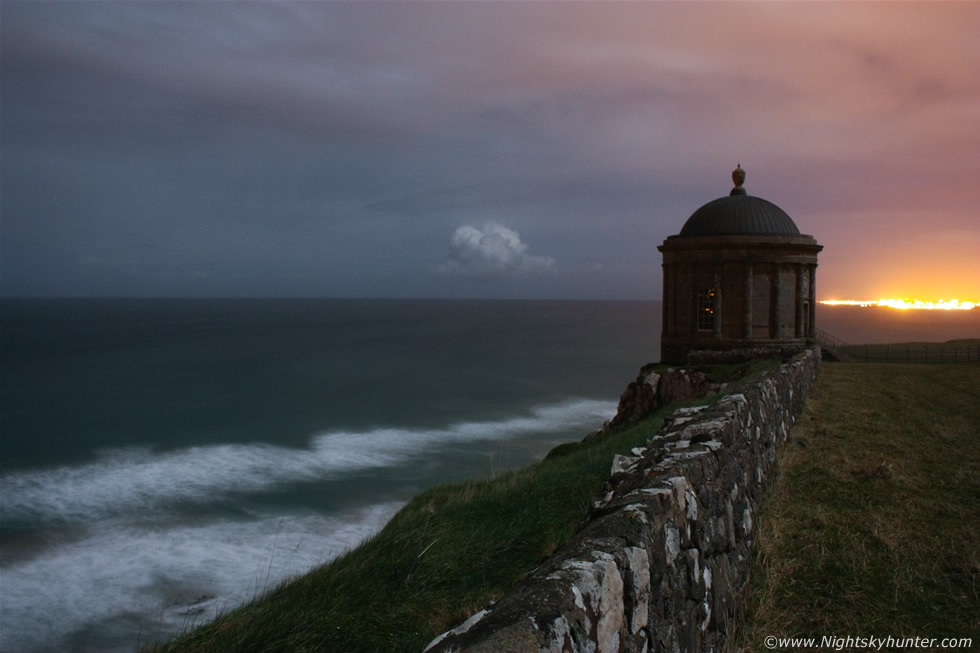 March 3rd 2012 on the Co. Derry coastline under a full moon. This is the famous Mussenden Temple located high on the cliff above Downhill Beach. This exposure almost looks like daytime however I can assure you it was well into the night. Although the overcast skies obscured any stars in the sky the moon did break out between clouds behind me and lit up the coastline which made for a nice night landscape scene, the moonlight on the waves below was refreshing and magical. * All images are available for sale in the form of photo prints, canvas or digital files for licensing, if you are interested in a purchase simply drop me an email.