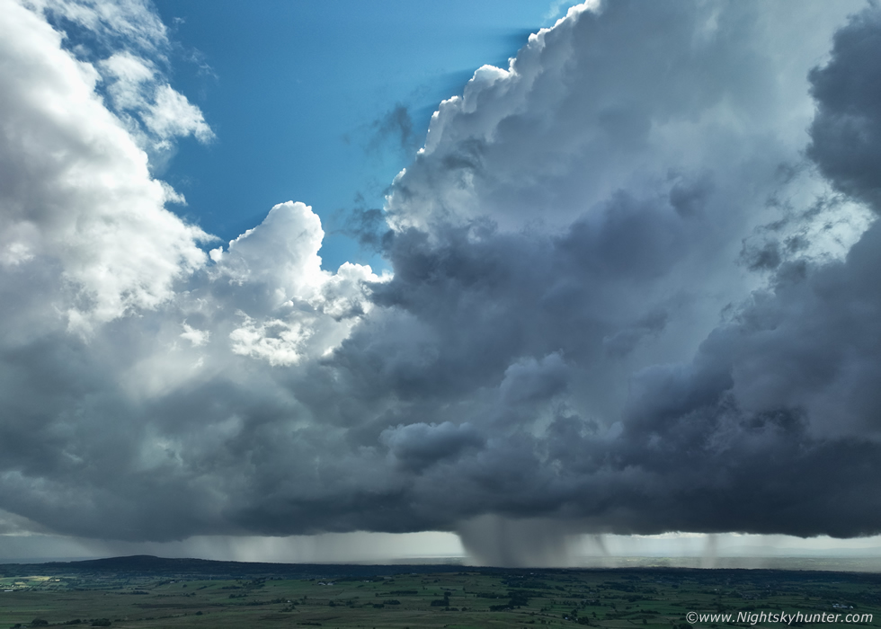 I said to Nigel ''this is what I wanted to see'', storm structure, the updraught tower was simply beautiful, I couldn't even tilt the drone's camera high enough to take in the full vertical extent of the tower. To me this is what storm chasing in N. Ireland is all about, capturing these stunning updraughts in the hot afternoon sunshine with thunder rumbling over our beautiful countryside while watching in awe in a t-shirt, to me this is what it's all about, I wait all year every year in the hope of experiencing these wonderful moments.