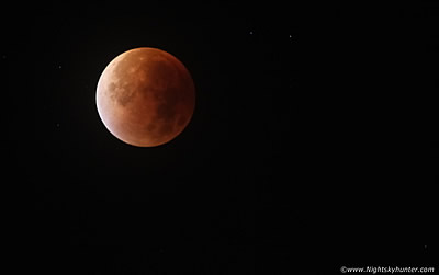 | During the early morning hours of September 28th 2015 a rare perigee total lunar eclipse occurred in N. Ireland skies in conjunction with an even more rare clear night. After setting the alarm my fiance Roisin and I woke at 02.30 in the morning and watched the spectacle together from my Dad's garden in Cookstown where we got treated to a sublime visual show. This was the darkest totality I had ever witnessed and during the climax of the umbral passage the landscape turned exceptionally dark with Milky Way and M31 easily visible to the naked eye, the eclipsed moon itself looked like a dark 3-D globe within Pisces with subtle red, orange, blue and black colour hues. The night was silent, exceedingly atmospheric and a great memory which we shall never forget. One page report with 6 images and 1 video clip. - REPORT. | ![]() |
